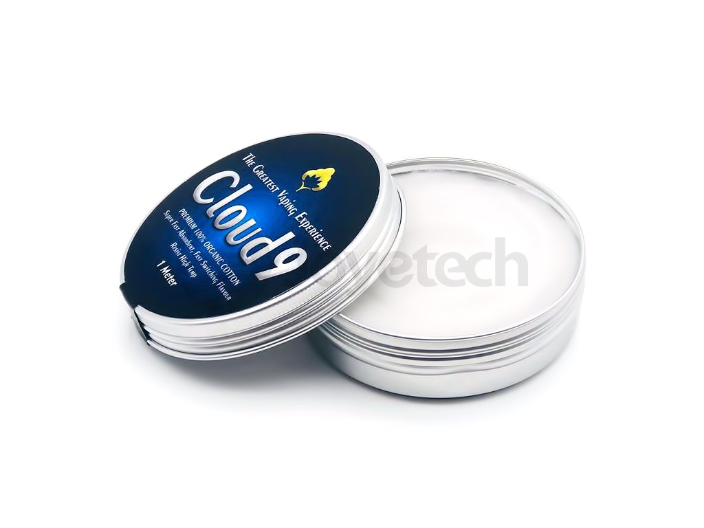 Vata Cloud 9 je dodávána v praktické uzavíratelné plechové krabičce, takže je velmi dobře přenosná, což oceníte hlavně při cestování. Samotná vata nemá žádnou chuť, a díky tomu tak s jejím použití dosáhnete čisté a nezkreslené chuti použité náplně do elektronické cigarety.