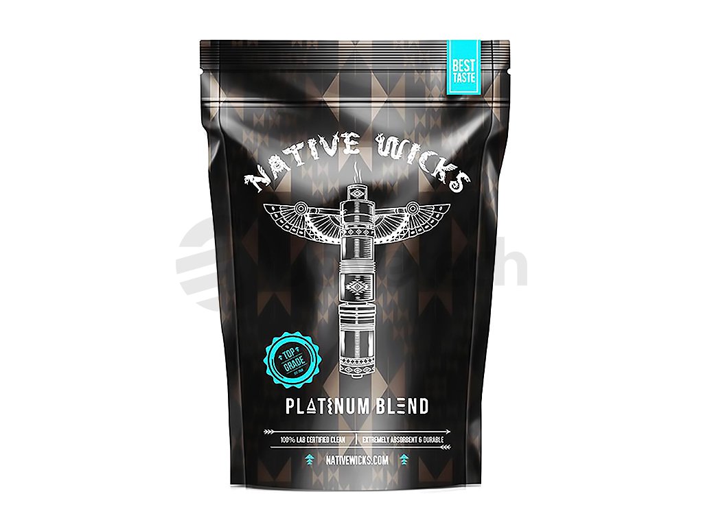 Native Wicks Platinum Blend je jedna z nejžádanějších vat na světě. Jedná se o 100% přírodní americkou vatu s vynikající savostí a absolutně bez chuti. Native Wicks tak výborně podává chuť e-liquidu a velmi dobře saje i hustější náplně s větším obsahem glycerolu. Native Wicks se výborně hodí zejména do RDA atomizérů, kde chcete testovat e-liquidy a příchutě.