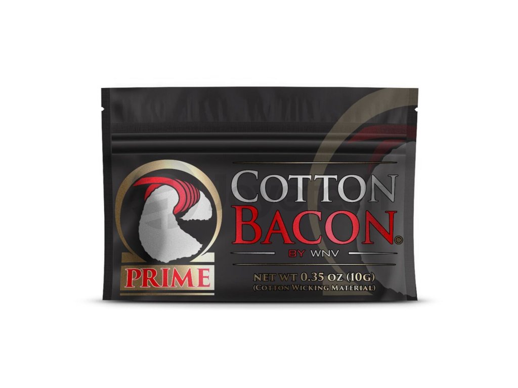 Cotton Bacon Prime je prémiovým nástupcem populární vaty Cotton Bacon V2 amerického výrobce Wick 'N' Vape. Jedná se o 100% přírodní bavlnu bez chemického ošetření a bělení. Díky pečlivému procesu zpracování se jedná o vynikající vatu se skvělou savostí pro vaše DIY atomizéry. S přírodní vatou Cotton Bacon Prime se mnohem lépe manipuluje, lépe se od sebe odděluji jednotlivé proužky a zároveň umožňuje mnohem rychlejší a jednodušší instalaci do spirálky. Verze Prime navíc nabízí až o 33% rychlejší absorpci e-liquidu, než u předešlé série V2.