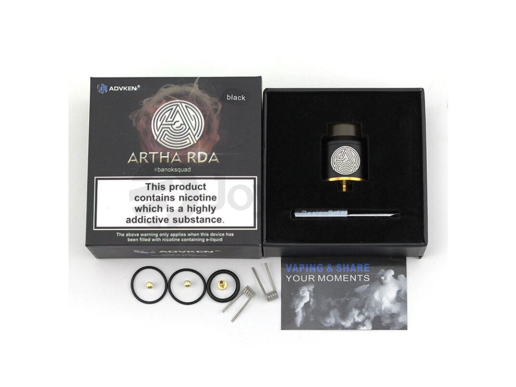 Advken Artha je překrásný RDA atomizér vhodný pro každodenní objevování nových příchutí vašich e-liquidů. Dokáže však zaujmout mnohem více prvky, než jen pouhým designem. Přesto je kvalitní zpracování jednou z hlavních výsad tohoto atomizéru. Celá konstrukce je vyrobena z kvalitních nerezových součástí za přispění odolného polyéterimidu, který nejen úžasně vypadá, ale zároveň nezkresluje chuť vašeho e-liquidu.