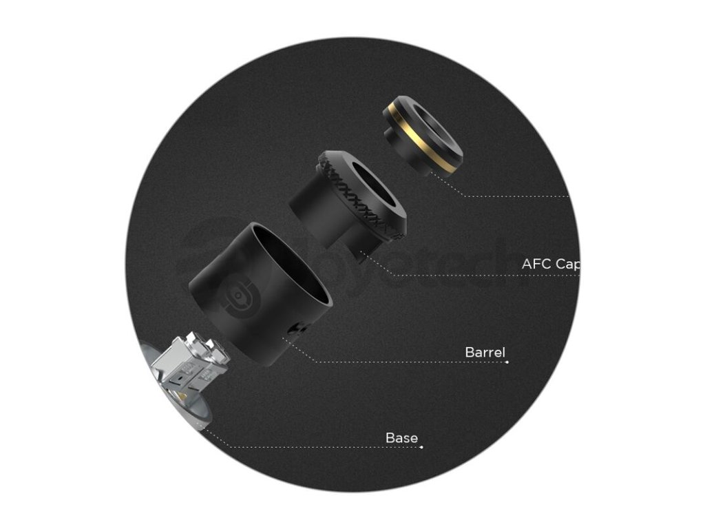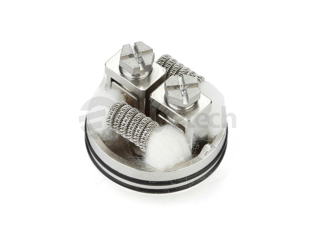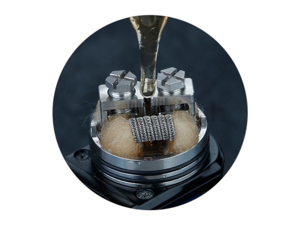 S instalací spirálek do základny si bez problému poradí i začátečníci. Spirálky snadno uchytíte pomocí dvou šroubků umístěných ve vrchní části. Na samotnou vatu rovněž zůstává dostatek prostoru, hned pod základnou se nachází bazének s délkou 5 mm, do kterého velice snadno umístíte potřebné množství vaty pro zásobení e-liquidem.