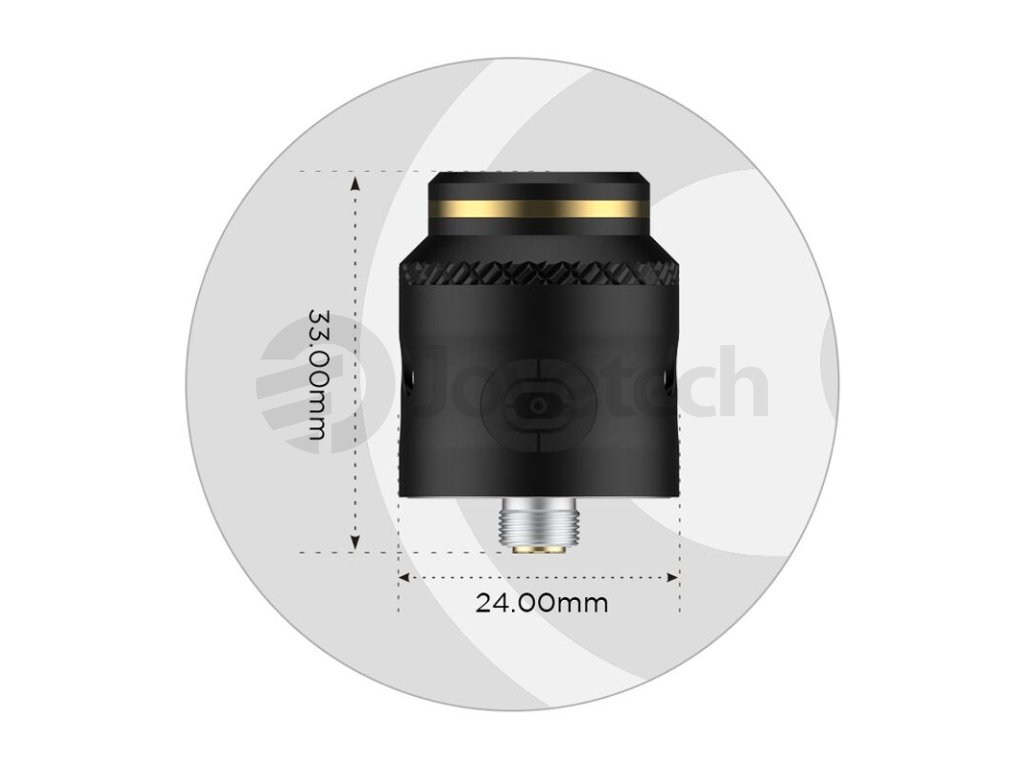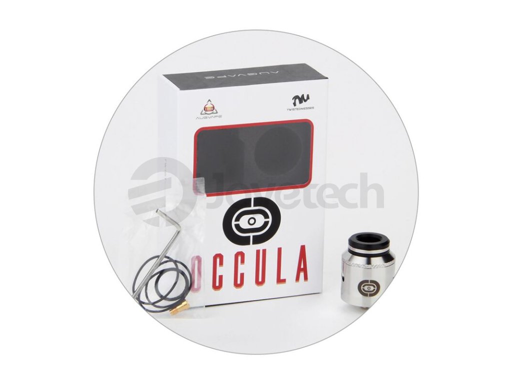 RDA atomizér Augvape Occula láká na stylové minimalistické zpracování a kompaktní rozměry těla. Jeho délka včetně závitu je pouhých 33 mm a průměr se zastavil na 24 mm. Díky těmto rozměrům skvěle esteticky ladí s většinou modů na trhu. Díky kratší konstrukci těla je navíc zaručena kvalitnější chuť při ochutnávání nových e-liquidů, je zkrácena dráha mezi základnou a náustkem. Ve spodní části atomizéru se potom nachází závit typu 510, který tuto kompatibilitu jen umocňuje.