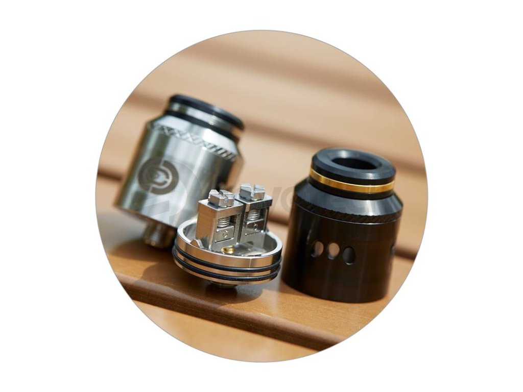 Augvape Occula RDA exceluje také ve výsledném podání chuti, která je velmi výrazná. Díky samotnému nízkému profilu atomizéru je snížena dráha mezi základnou a náustkem, chuť bude proto vždycky velice plná a výrazná. Model také představuje vynikající systém airflow. Po obou stranách těla atomizéru se nachází tři menší otvory s praktickým zkosením pro plynulejší a efektivnější přísun vzduchu do atomizéru. Otvory jsou plně regulovatelné a vy sami se můžete rozhodnout, zda chcete nechat otevřenou jen jednu stranu, nebo obě. O přísun páry do úst se postará 10 mm široký náustek ve vrchní části. Augvape Occula RDA je po všech stránkách výborný dokapávací atomizér pro každodenní využití. Dokáže vás příjemně překvapit svým výrazným podáním chuti, ale také velice jednoduchou montáží spirálek a dostatkem vnitřního prostoru pro snadnou instalaci. Atomizér je k dostání ve dvou stylových barvách.