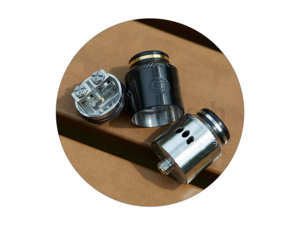 Augvape Occula je nový RDA atomizér určený pro přímé potahování do plic a ochutnávání nových e-liquidů. Tento atomizér vzešel ze spolupráce renomovaných vaperských společností Augvape a Twisted Messes. Nabídne tak precizní dílenské zpracování, minimalistický design a především jedinečnou základnu pro snadné osazení spirálkami. Tělo nabídne také velice praktické rozměry. Délka celého atomizéru je jen 33 mm a průměr se zastavil na 24 mm. Díky těmto rozměrům si skvěle rozumí s drtivou většinou modů na dnešním trhu. Ve spodní části atomizéru se potom nachází závit typu 510 pro kompatibilitu s mody se stejným typem závitu. Na tomto závitu najdete pozlacený centrpin pro perfektní kontakt a vodivost. Centrpin se dá kdykoliv vyšroubovat a nahradit dutým BF pinem pro kompatibilitu se squonk mody. Atomizér je tak skutečně všestranný a můžete ho využívat buď na klasické dokapávání, nebo na zásobení přímo ze squonk lahvičky ve squonk modech.