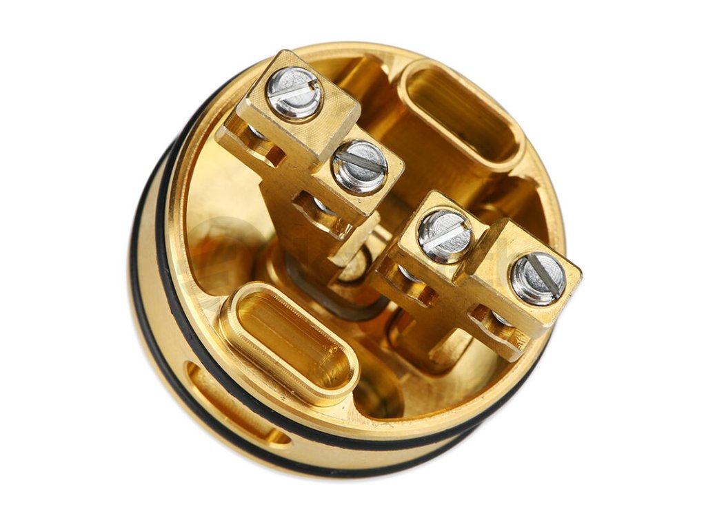 Základem atomizéru je skvělá a prostorná základna, do které lze nainstalovat buď jednu, nebo rovnou dvě spirálky. Díky širokým kontaktům ujišťuje výrobce své uživatele, že lze instalovat i širší a různě motané dráty. V základně je na ně dostatek prostoru. Ve spodní části se nachází závit typu 510 s náhradním BF pinem. Po jeho instalaci můžete tento clearomizér používat i na doplňovací squonk mody.