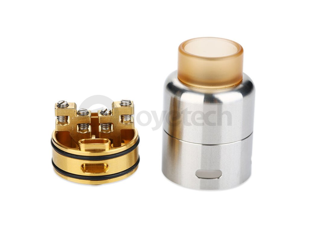 Opět nechybí perfektní dílenské zpracování a kvalitní použité materiály. Celé tělo je vyrobeno z nerezové oceli typu SS304. Ta je doplněna ve vrchní části ultemovým náustkem z polyéterimidu. S tímto náustkem bude váš e-liquid chutnější, než kdykoliv předtím.