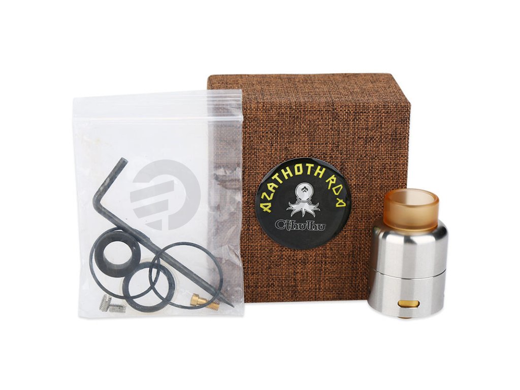 Cthulhu Azathoth RDA je dalším atomizérem do rozšiřující se nabídky výrobce Cthulhu Mod. Azathoth je však atomizér typu RDA. Jedná se tedy o dokapávací atomizér, do kterého se e-liquid kape přímo na spirálky.