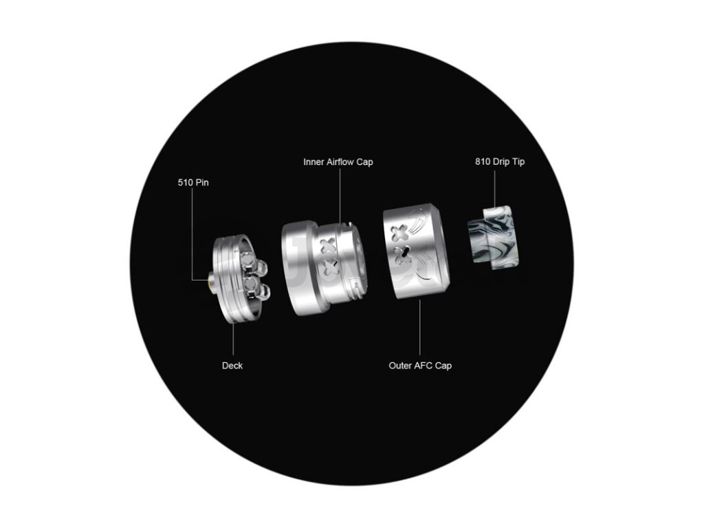 Díky precizně navržené konstrukci, perfektnímu ofuku spirálek a širokému náustku s uchycením typu 810 ve vrchní části se můžete těšit na nekompromisní a vynikající podání chuti. Atomizér se skvěle hodí pro jakékoliv typy příchutí, ať už se jedná o ovocné směsi, dezerty, nebo tabákovky, vždy dodá perfektně prokreslenou chuť a nádherně vykreslí všechny použité suroviny v každém e-liquidu.