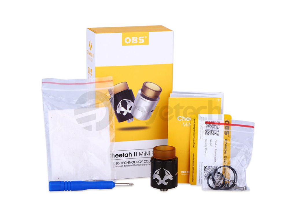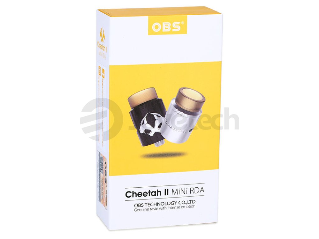Nástupce oblíbeného RDA atomizéru ve verzi Mini přináší především vynikající podání chuti v malém těle. Jedná se o kompaktní atomizér se solidní výbavou. OBS Cheetah 2 Mini nabídne délku pouhých 35,5 mm včetně náustku. Průměr je potom 22 mm, takže je vhodný i na menší mody. Ve vrchní části se nachází nový široký náustek vyrobený z polyeterimidu. Tento plast zaručuje vynikající izolaci tepla od spirálek a výborné podání chuti. Je navíc vysoce odolný.