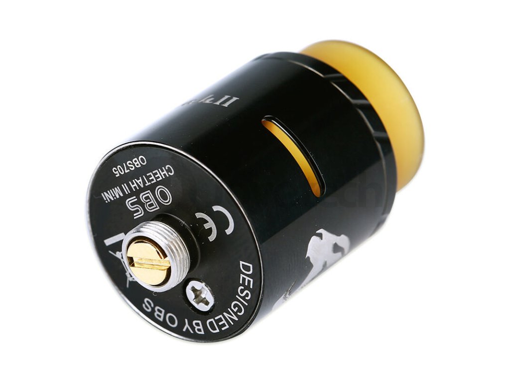 Nástupce oblíbeného RDA atomizéru ve verzi Mini přináší především vynikající podání chuti v malém těle. Jedná se o kompaktní atomizér se solidní výbavou. OBS Cheetah 2 Mini nabídne délku pouhých 35,5 mm včetně náustku. Průměr je potom 22 mm, takže je vhodný i na menší mody. Ve vrchní části se nachází nový široký náustek vyrobený z polyeterimidu. Tento plast zaručuje vynikající izolaci tepla od spirálek a výborné podání chuti. Je navíc vysoce odolný.