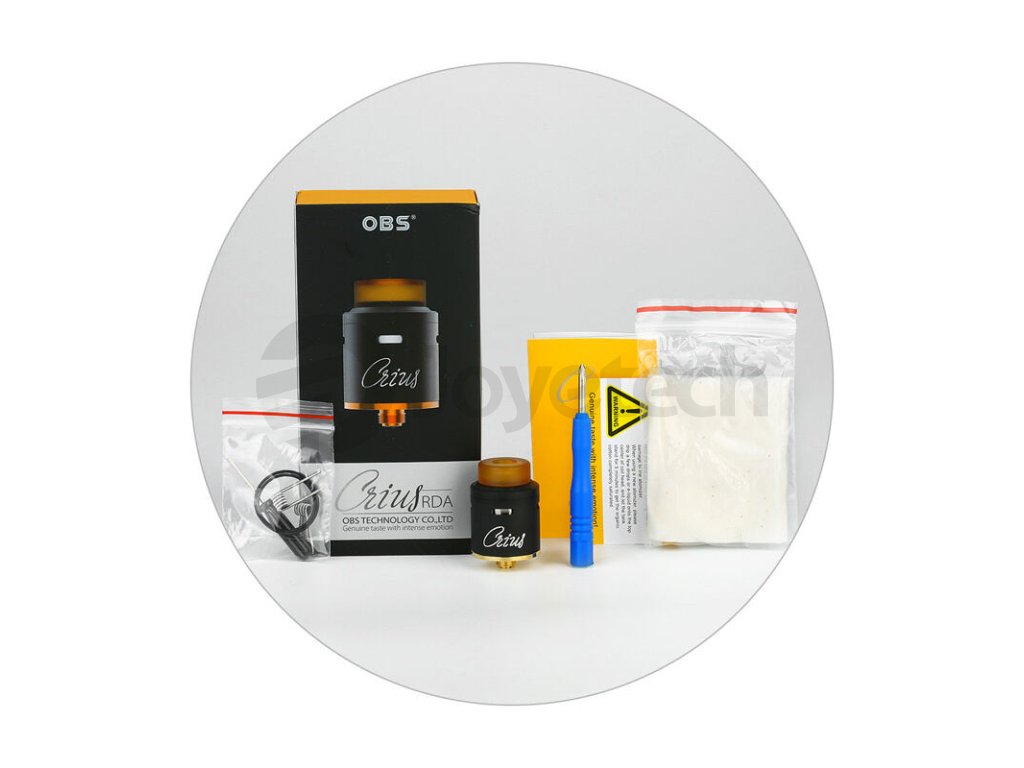 Společnost OBS uvádí na trh vždy krásně zpracovaná zařízení. Nejinak tomu je v případě RDA atomizéru Crius. Celé tělo je vyrobeno z kvalitní nerezové oceli SS304, materiál je doplněn polyéterimidovým náustkem ve vrchní části.