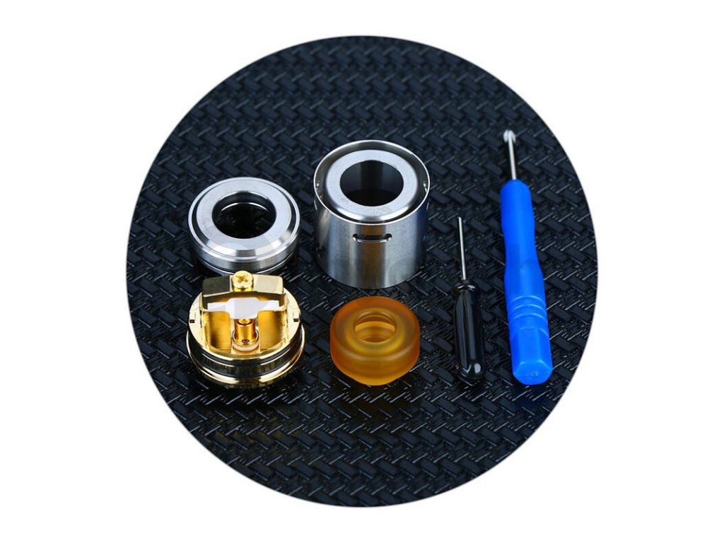 Součástí balení je dutý bf pin pro uchycení na squonky. Tento pin slouží pro přísun e-liquidu ze squonk lahvičky přímo do vaty u spirálek atomizéru. Tento pin je možné nahradit standardním šroubovacím 510 centrpinem.