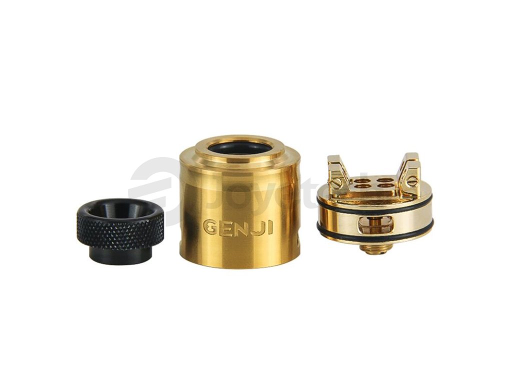Tigertek Genji je nový RDA atomizér od stejnojmenného výrobce, který přichází s perfektní základnou pro dvě spirálky a vylepšeným systémem airflow pro dosažení maximálního prožitku z produkované chuti. Celá konstrukce je velice jednoduchá, stejně jako u většiny RDA atomizérů. Nemusíte se tedy bát náročné údržby, atomizér se skládá pouze z několika částí. Mezi hlavní součásti patří široký náustek pro zisk chutné páry, zároveň se v základním balení nachází náustek typu 510 s redukcí, můžete si tedy zúžit otvor pro výstup páry do úst, čímž si vychutnáte jemnější chuť, než v případě širokého náustku.