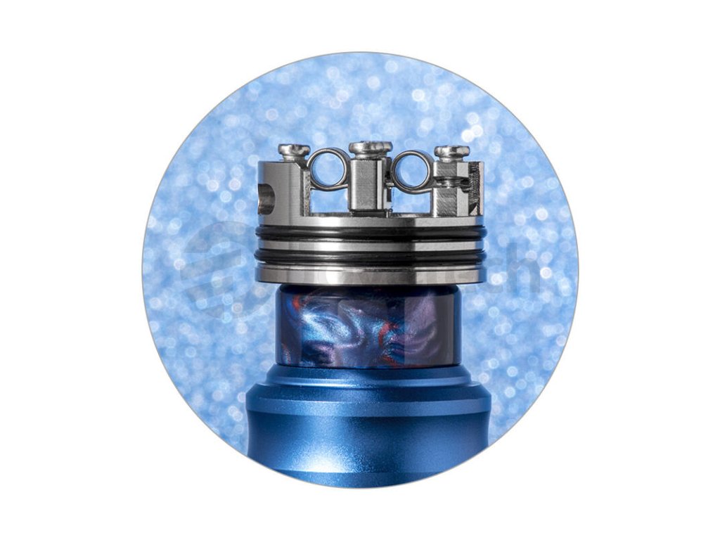Celý atomizér je vyroben z hliníku a vrchní, široký náustek je vyroben z resinu. Dohromady tvoří komplexní celek a představují úchvatný design a stylové zpracování. Uvnitř atomizéru se nachází nová základna pro instalaci celkem dvou spirálek. Kontakty jsou dostatečně široké i pro silnější dráty typu clapton. Jistě oceníte jednoduchou instalaci, kterou hravě zvládnou i začátečníci. Základna navíc disponuje dostatkem prostoru pro usazení vaty.