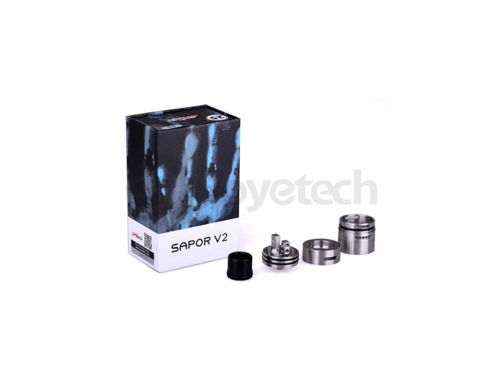 RDA atomizér od společnosti WOTOFO s označením Sapor V2 je vynikajícím produktem pro náročné uživatele, vyžadující tu nejlepší chuť a obrovské množství páry. S průměrem 25mm se řadí mezi větší atomizéry, je vhodný především na větší mody. Velocity základna je vhodná pro instalaci dvou spirálek a díky své hloubce pojme velké množství vaty. Není proto zapotřebí dokapávat příliš často. Díky regulaci sání lze nastavit přívod vzduchu do atomizéru a tím ovlivnit i tuhost potahu. Samozřejmostí je i PEEK izolátor německé výroby. Tělo atomizéru je vyrobeno z kvalitní nerezové oceli 304, což dodává tělu dokonalý vzhled a zároveň vysokou odolnost a kvalitu.