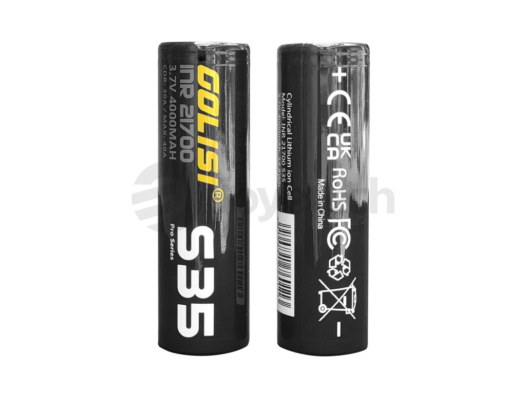 Nová revoluční baterie typu Golisi S35 21700 představuje revoluci v pravém slova smyslu. Tato baterie nabízí obrovskou kapacitu a efektivní vybíjecí proud, který rozžhaví váš atomizér rychleji, než kdykoliv předtím. Baterie zároveň drží svou kapacitu mnohem lépe, než předchozí články 18650. Tato baterie je vhodná pro gripy a mody se slotem 21700. Její kapacita dosahuje 4000 mAh a vybíjecí proud až 40 A. Baterii lze použít převážně pro nízkoodporový vaping.