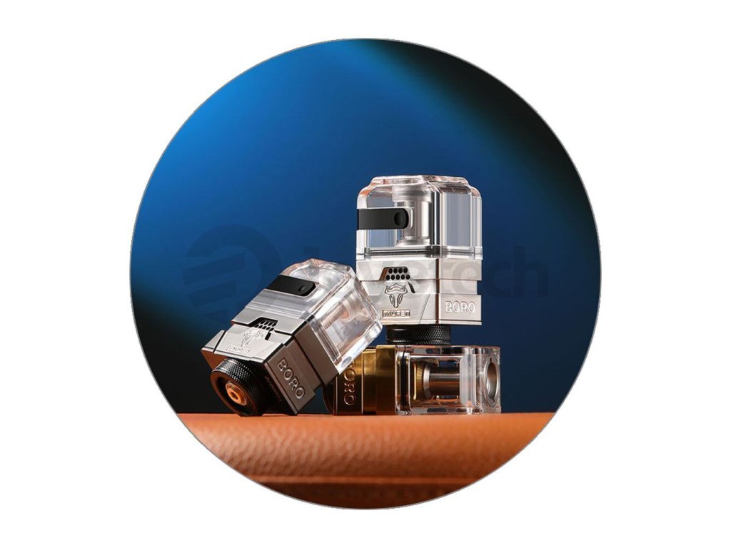 Na těle tanku THC Tauren Boro se nachází hned dva plnící otvory pro ještě jednodušší a variabilnější možnosti doplňování. Jednou z jeho hlavních předností je také možnost nastavení délky tanku a možnost nastavení airflow prostřednictvím airflow kroužku na těle.