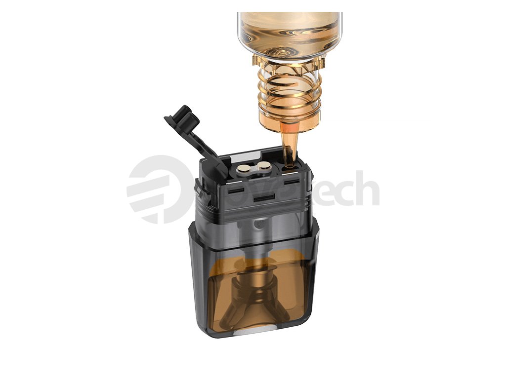 Pod Cartridge sloužící jako zásobník pro Vaší oblíbenou náplň (e-liquid), která v tomto případě slouží zároveň i jako náustek a nosič samotné žhavící hlavy. Plnění a výměna cartridge je velmi jednoduchá. Pro plnění stačí vytáhnout Cartridge z těla e-cigarety a doplnit vámi oblíbeným e-liquidem. Samotná instalace pod cartridge do těla cigarety probíhá pouhým nasunutím. Stav hladiny je díky průhlednosti Cartridge dobře vidět, a tak víte, jak na tom aktuálně jste a jestli můžete třeba vyrazit na celodenní výlet.