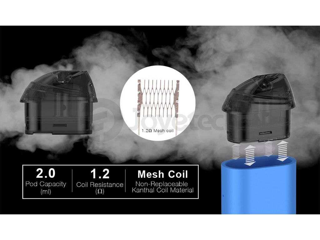 Náhradní Pod Cartridge pro elektronickou cigaretu Aspire Minican, Minican+, Minican 2, o objemu 2ml s integrovanou žhavící hlavou s mesh kanthalovou spirálkou s odporem 1,2ohm.