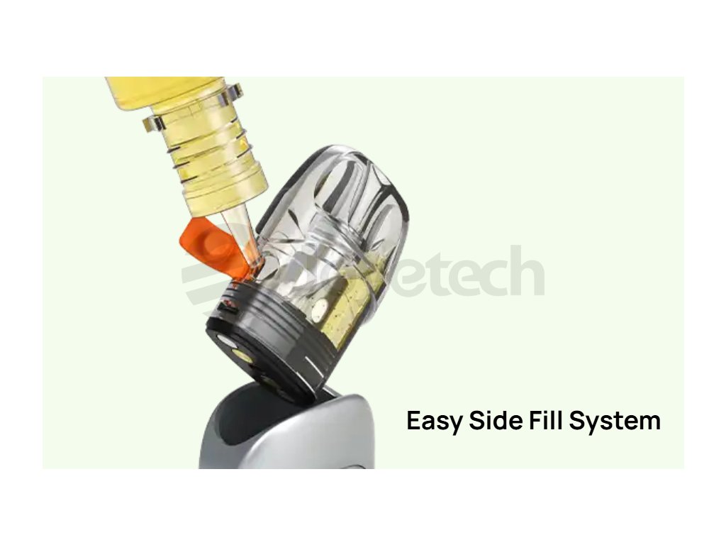 Easy Side Fill SystémSystém Easy Side Fill umožňuje rychlé a hygienické doplnění e-liquidu přímo z boku cartridge bez nutnosti demontáže. Praktický boční otvor pro plnění minimalizuje riziko rozlití a umožňuje jednoduché použití různých typů lahviček. Silikonový závěrek zajišťuje těsné uzavření a zabraňuje úniku e-liquidu během vapování i transportu. |