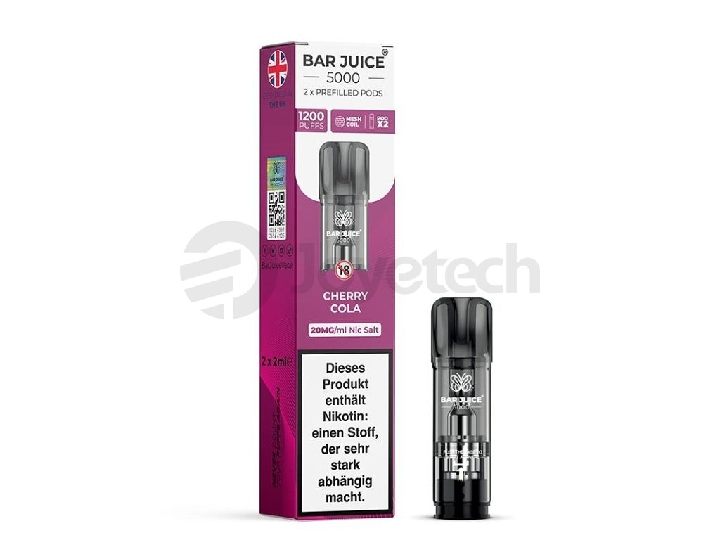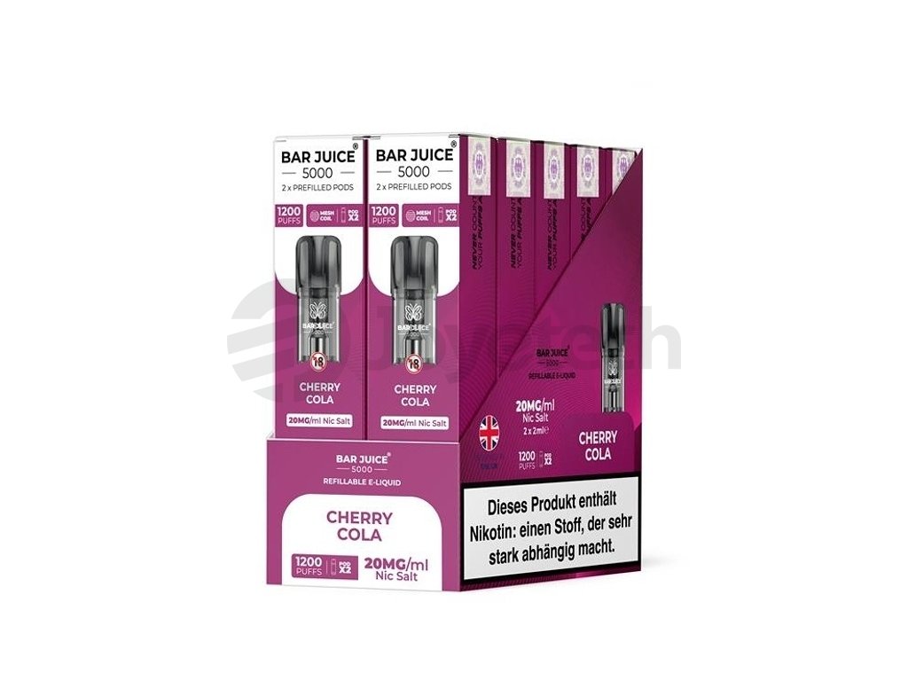 Parametry a specifikaceVýrobce: Bar Juice Žhavící hlava: Integrovaná v Podu Materiál spirálky: Mesh Objem: 2ml Styl potahování: MTL (Mouth-to-Lung) Příchuť: Cherry Cola (Třešeň, Kola) Obsah nikotinové soli: 20mg/ml Způsob plnění: Nelze, již předplněné Legislativa: TPD kompatibilní