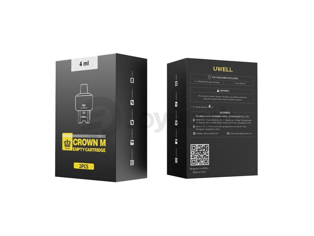 Náhradní cartridge Uwell Crown M Pod disponuje základním objemem 4ml. Jedná se o samostatnou prázdnou cartridge, ke které je nutné přikoupit odpovídající žhavící tělíska. Je kompatibilní s tělísky z platformy Uwell Crown M. Cartridge se postará o perfektní přenos husté a bohaté páry do úst a o vynikající podání chuti. Disponuje také ergonomicky tvarovaným náustkem pro pohodlné držení v ústech a praktickým mechanismem vrchního plnění.