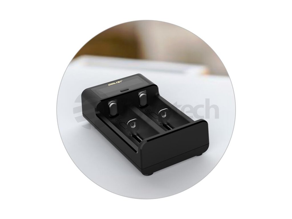 Nabíječka Golisi I2 dokáže nabíjet dvě baterii s délkou mezi 32 - 70 mm. S přehledem si tak dobijete běžně používané typy baterií jako 18650, 20700 a 21700. Aktuální stav nabíjení lze sledovat na přehledném displeji ve vrchní části. Nabíječka podporuje rychlé dobíjení proudem až 2A v jednom slotu. Dobíjet baterie Li-ion můžete s proudem 0,5A, 1A nebo 2A. K přepínání mezi dobíjecími proudy poslouží tlačítko umístěné pod displejem.