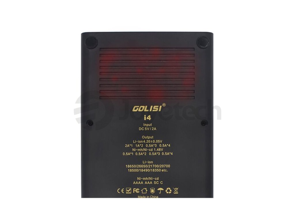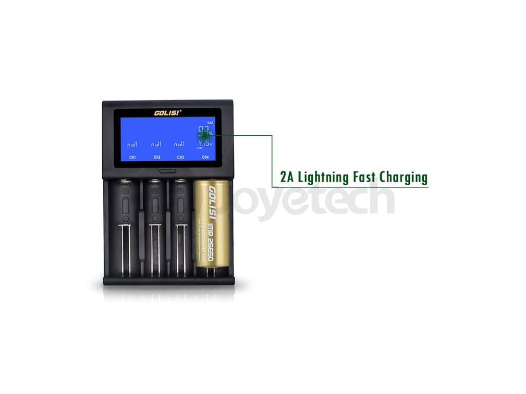 Golisi I4 je multifunkční nabíječka pro řadu článkových baterií a pro běžně užívané baterie v elektronických gripech. Jedná se o upgradovanou a vylepšenou verzi původní nabíječky Golisi S4. Nabíječka Golisi I4 nabídne hned čtyři nabíjecí sloty. Při nabíjení čtyř baterií souběžně je možné dobíjet proudem 0,5 A v každém slotu, pokud však budete narychlo potřebovat dobít alespoň jednu baterii, postačí připojit jednu dobíjenou baterii do pravého slotu nabíječky, tento slot disponuje funkcí rychlého dobíjení proudem až 2 A.