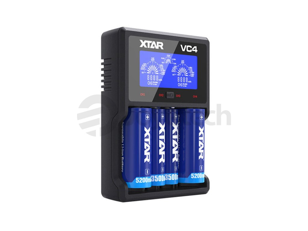 XTAR VC4 je kvalitní multifunkční nabíječka článků a dalších baterií od výrobce XTAR. Disponuje čtyřmi individuálními nabíjecími sloty. Lze nabíjet až čtyři baterie současně, případně každou baterii samostatně. Nabíječka XTAR VC4 podporuje většinu běžně dostupných článků typu Li-ion, IMR, INR, ICR a Ni-MH, Ni-CD. Ve vrchní části nabíječky se nachází velký a přehledný LCD displej, který zobrazuje všechny potřebné parametry během nabíjení. Na displeji se zobrazuje dobíjecí proud baterií, napětí baterií a kapacita baterií. V případě kompletního dobití článku se tento údaj zobrazí přímo na displeji. Nabíječka VC4 také nabídne funkci zobrazení chybových hlášek, pokud se během používání na displeji zobrazí NULL, jedná se o vadnou baterii, v případě zobrazení ERR je baterie vložena obráceně, nebo došlo k jejímu zkratu. Tato funkce ušetří váš čas během nabíjení. Pod displejem se nachází malé tlačítko, kterým si snadno rozsvítíte a zhasnete displej pro úsporu energie.