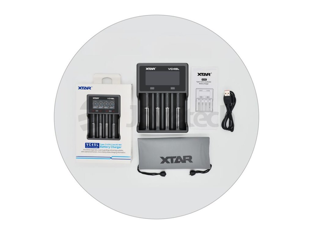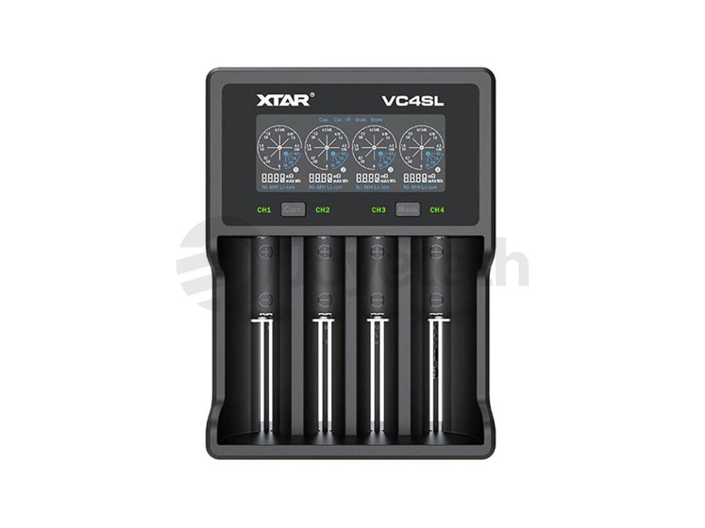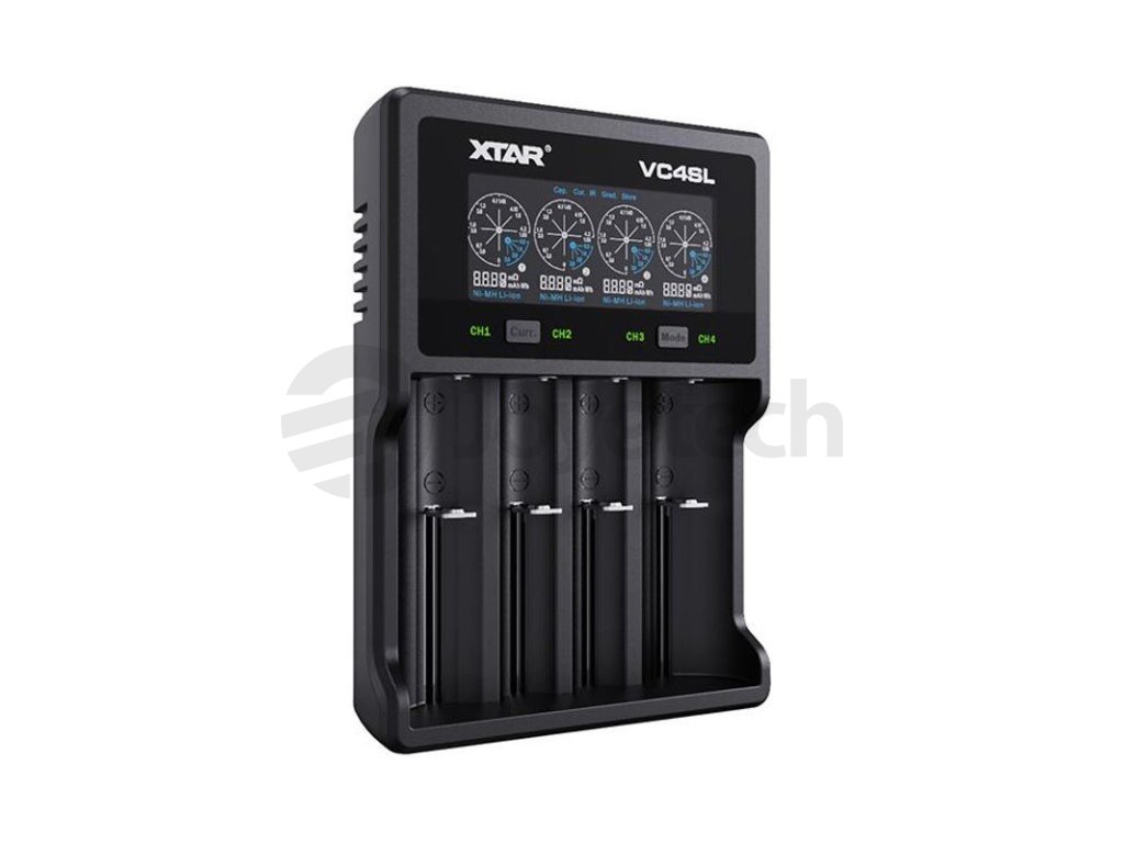 XTAR VC4SL je upgradovanou verzí nabíječky XTAR VC4S. Jedná se o kvalitní multifunkční nabíječku článků a dalších baterií. Nabíječka disponuje hned čtyřmi nabíjecími sloty pro dobíjení až čtyř baterií současně, každý slot disponuje individuálním okruhem, nabíjet proto můžete také například pouze jednu baterii, nebo třeba jen dvě baterie. Při dobíjení jedné baterie lze také využít funkci extrémně rychlého dobíjení proudem 3A. Při nabíjení můžete také měnit dobíjecí proud manuálně pomocí tlačítka Curr. umístěném pod displejem. Druhé tlačítko Mode slouží pro přepínání dalších hodnot nabíječky. Nabíječka XTAR VC2S podporuje většinu běžně dostupných článků typu Li-ion, IMR, INR, ICR, Ni-MH a Ni-CD. Ve vrchní části nabíječky se nachází velký a přehledný LCD displej, který zobrazuje všechny potřebné parametry během nabíjení. Na displeji se zobrazuje dobíjecí proud baterií, napětí baterií a kapacita baterií.