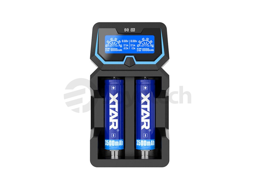 XTAR X2 je kvalitní multifunkční nabíječka článků a dalších baterií od výrobce XTAR. Disponuje dvěma individuálními nabíjecími sloty. Lze nabíjet dvě baterie současně, případně jednu baterii samostatně. Nabíječka XTAR X2 podporuje většinu běžně dostupných článků typu Li-Ion, Ni-MH a Ni-CD. Ve vrchní části nabíječky se nachází velký a přehledný LCD displej, který zobrazuje všechny potřebné parametry během nabíjení. Na displeji se zobrazuje procentuální stav baterií, napětí baterií, dobíjecí proud a kapacitu nabíjených baterií.