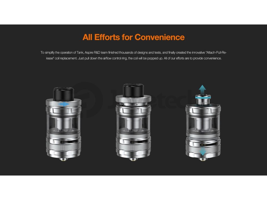Aspire je jeden z velkých výrobců, který od roku 2013 posouvá dopředu zařízení, ale i způsob vapování. Aspire první představil takzvané BVC hlavy. Aspire se zaměřoval na tyl kouření pusa-plíce, ale jako první přišel s nízkoodporovým tankem. Aspire dále pokračuje na pevných základech. Aspire má pro začátečníky skvělé sady, pokročilí si užijí novou řadu nízkoodporových tanků