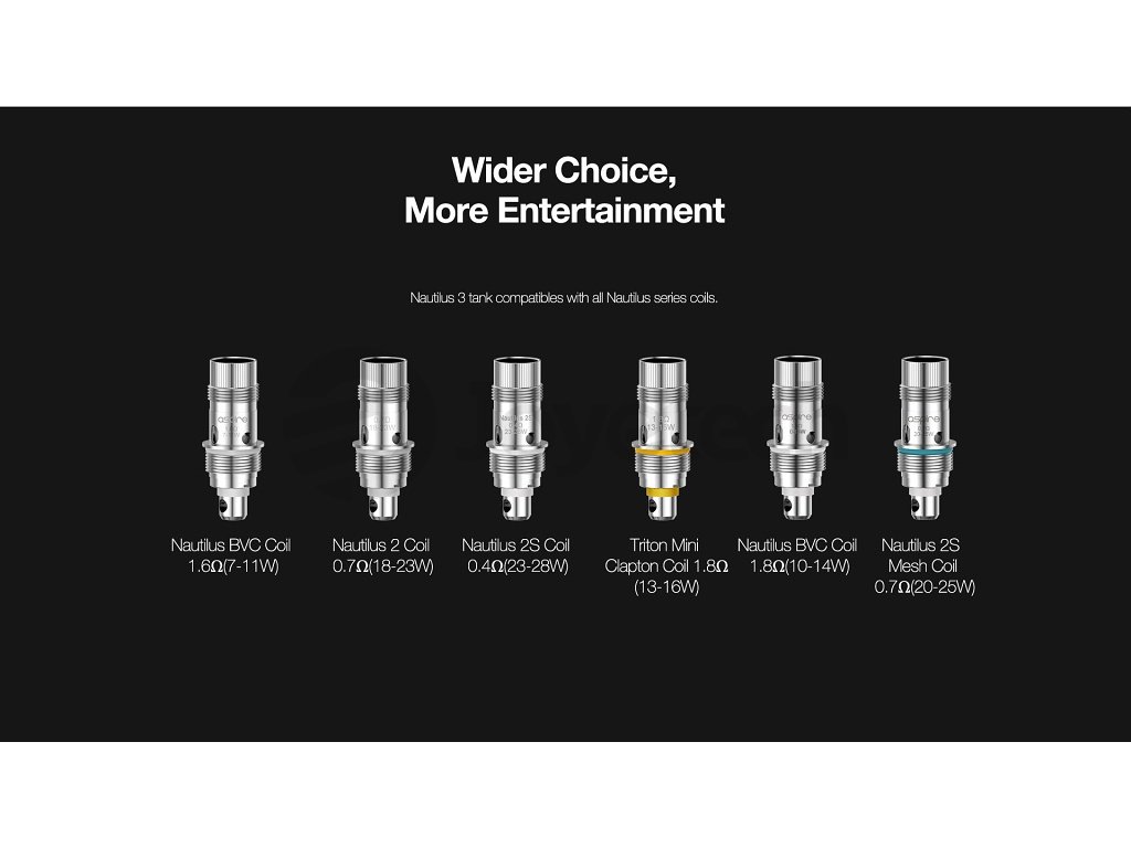 Další z řady nástupců legendárních Clearomizérů Aspire Nautilus, tentokrát ve třetí verzi, vyrobený z nerezu a skla o průměru 24mm. Plně kompatibilní se všemi žhavícími hlavami Nautilus. Propracovaný systém přívodu vzduchu (Airflow) 7 stupňů. Vhodný jak pro MTL, tak DL styl vapování. Jednoduché horní plnění e-liquidem. 2x žhavící hlava Nautilus v SETU.