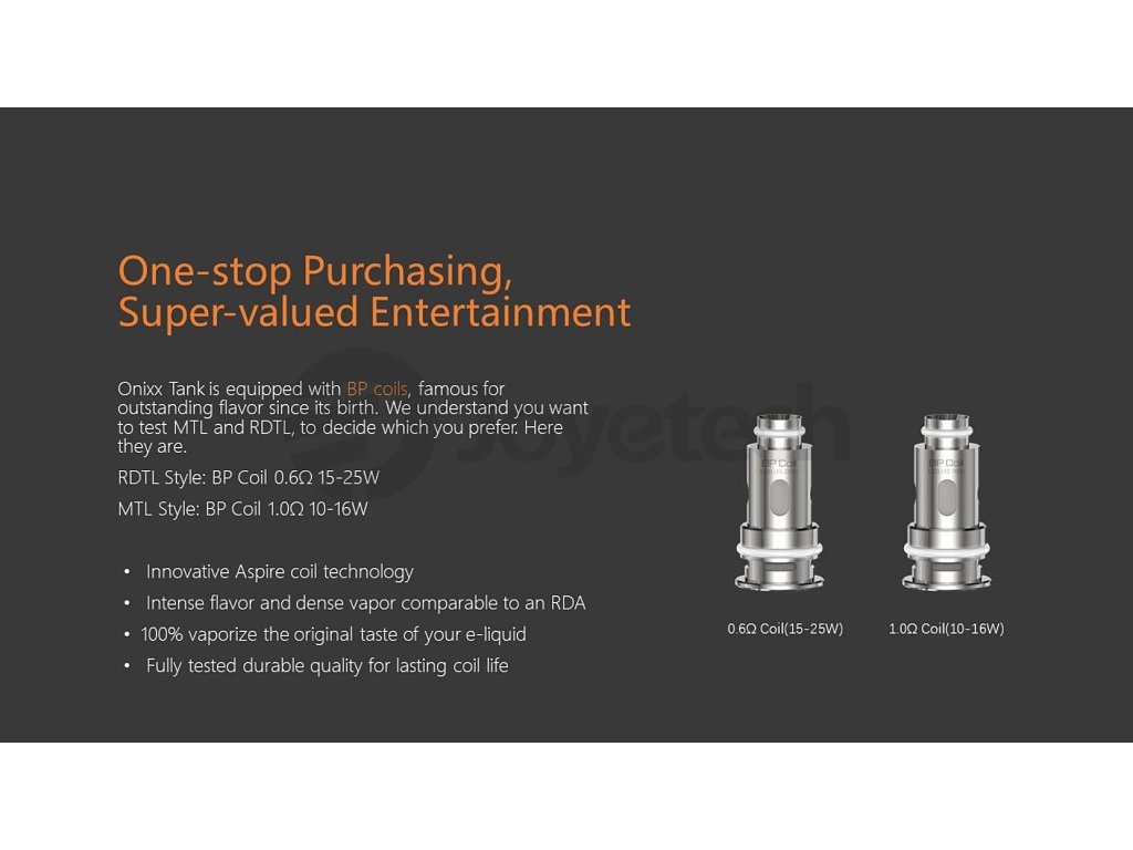 Aspire je jeden z velkých výrobců, který od roku 2013 posouvá dopředu zařízení, ale i způsob vapování. Aspire první představil takzvané BVC hlavy. Aspire se zaměřoval na tyl kouření pusa-plíce, ale jako první přišel s nízkoodporovým tankem. Aspire dále pokračuje na pevných základech. Aspire má pro začátečníky skvělé sady, pokročilí si užijí novou řadu nízkoodporových tanků