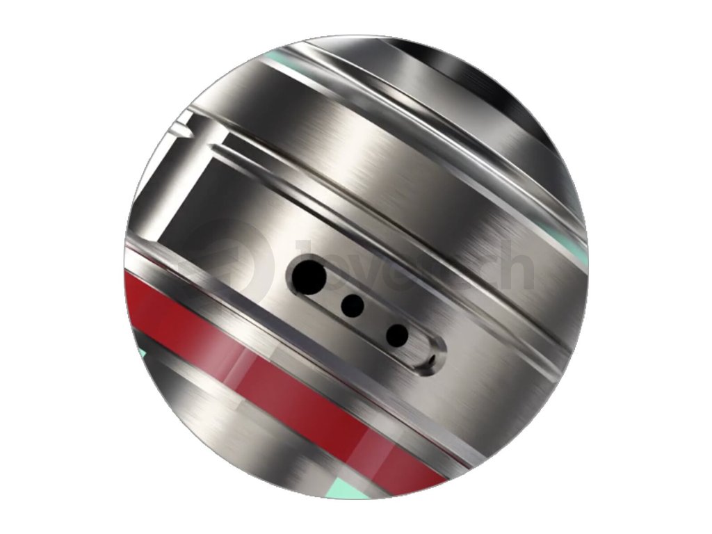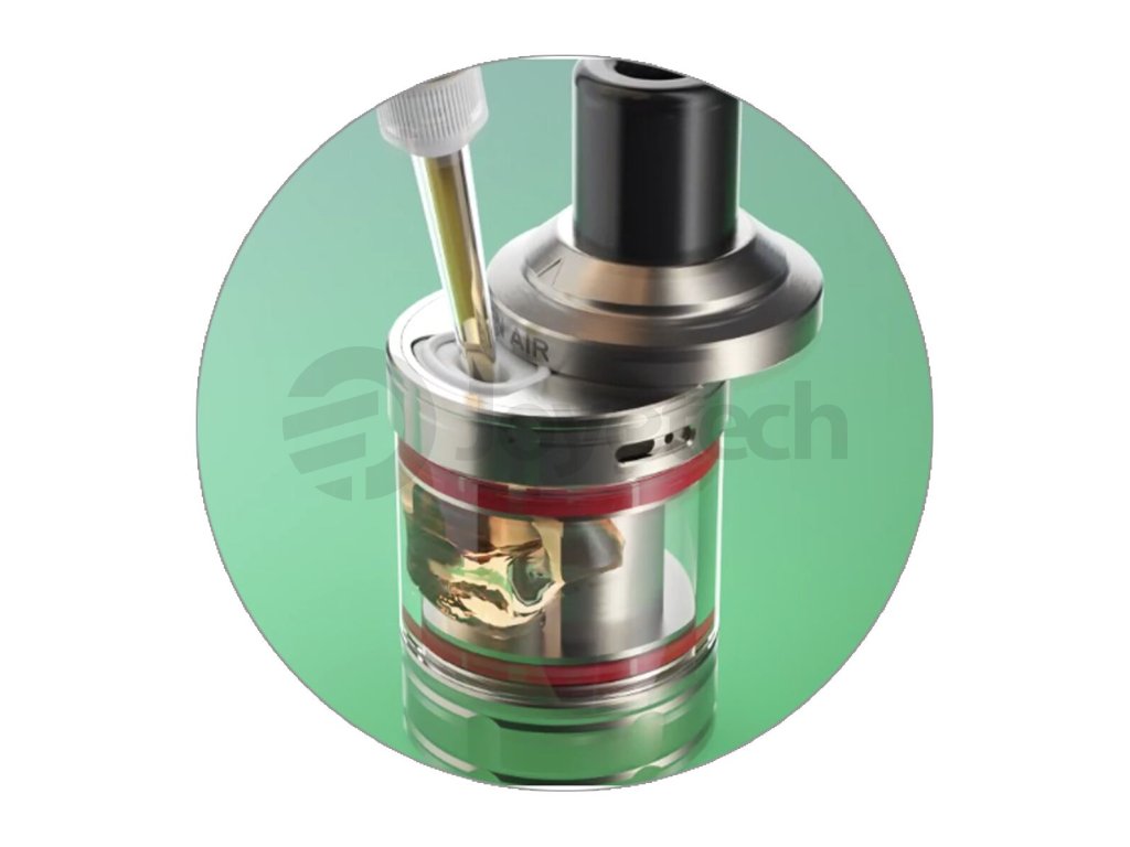 Díky inovativnímu hornímu systému airflow můžete vapovat bez starostí a bez problémů spojených s možným únikem e-liquidu spodními vzduchovými otvory. Přívod vzduchu ve vrchní části je plně regulovatelný a výslednou tuhost potahu si tak nastavíte velice jednoduše během pár vteřin. Díky umístění systému do horní části atomizéru je navíc zajištěna plynulejší a efektivnější cirkulace vzduchu uvnitř atomizéru pro zisk ještě lepší chuti.