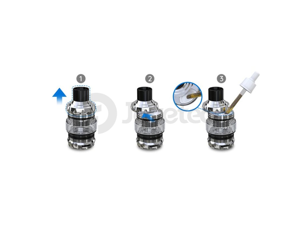 Objem tanku činí 4 ml. Díky této obrovské kapacitě nebudete muset řešit časté doplňování a užijete si dlouhé hodiny pohodového a nerušeného vapování. V případě nutnosti plnění vás potěší přítomnost jednoduchého vrchního systému s dětskou pojistkou. Jemně nadzdvihněte vrchní uzávěr a následně ho vysuňte do strany. Poté už můžete začít plnit e-liquid až do maximální kapacity tanku. Proces zabere jen několik málo vteřin.