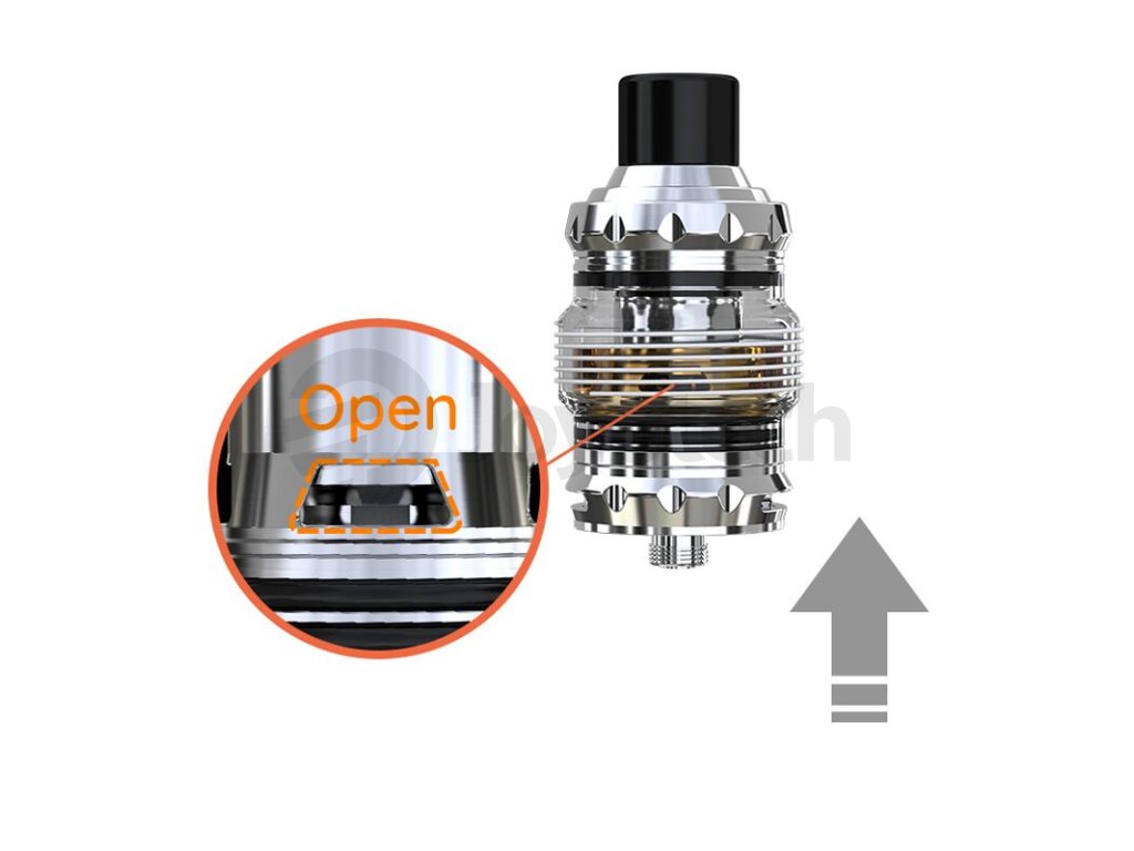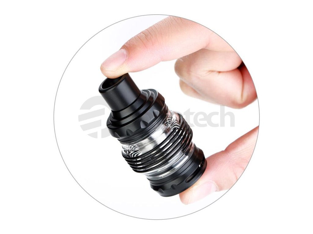 Pokud bude nutné vyměnit žhavící tělísko, potěší vás inovativní technologie uzamčení tanku. Jednoduchým pohybem uzamknete přístup e-liquidu ke žhavící hlavě a následně můžete hlavu se základnou odšroubovat a tělísko vyměnit. Po úspěšné výměně vše zašroubujete a přístup opět odemknete. Jednoduchá a čistá výměna hlavy usnadní používání zejména začátečníkům v oblasti vapování.