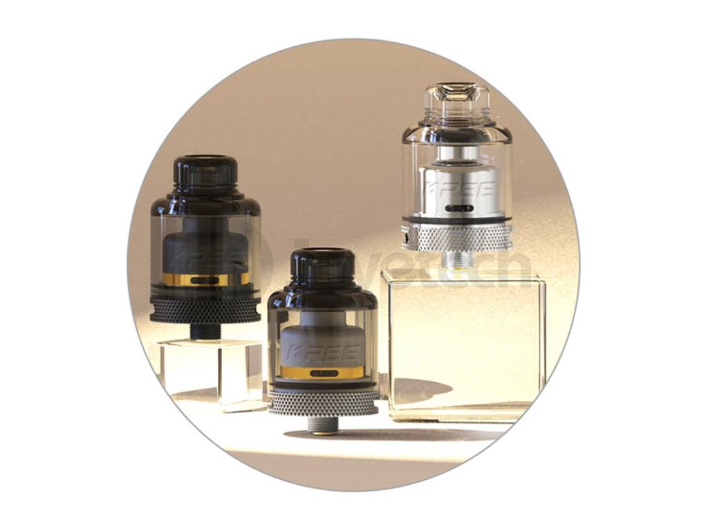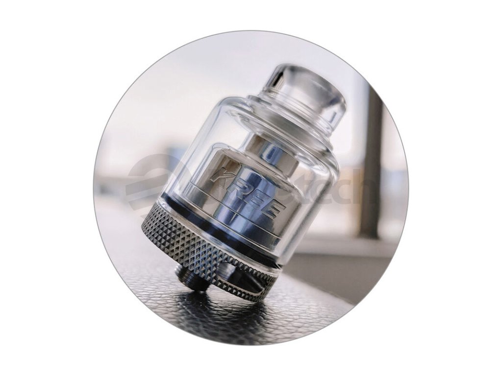 Stejně jako v případě první verze, přichází i verze Kree 24 RTA se stylovým a futuristickým designem. Těšit se tak můžete na moderní základnu a vnitřní části z nerezové oceli, kterou doplňuje skleněné a průhledné tělo tanku. Díky praktickému průměru 24 mm atomizér navíc skvěle padne na většinu modů na trhu a stane se opravdovou ozdobou celé vaší sady.