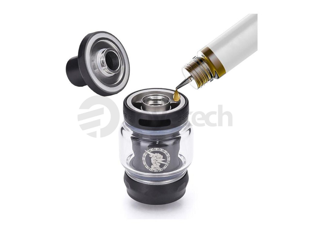 Clearomizér nabídne oblíbený a praktický systém vrchního airflow. Kroužek pro regulaci přísunu vzduchu je tak umístěn ve vrchní části atomizéru a zamezuje jakémukoliv možnému úniku e-liquidu například spodními vzduchovými otvory. Umístění airflow systému do vrchní části nabídne také prokreslenější chuť každého e-liquidu díky lepšímu ofuku tělíska.