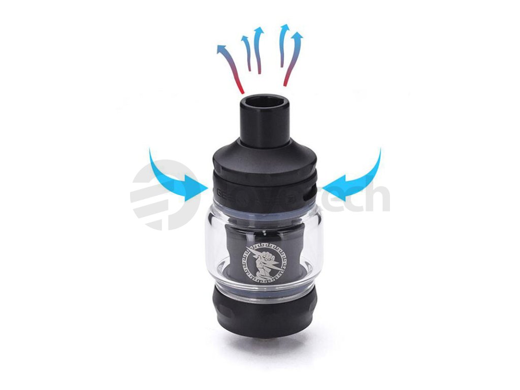 Clearomizér nabídne oblíbený a praktický systém vrchního airflow. Kroužek pro regulaci přísunu vzduchu je tak umístěn ve vrchní části atomizéru a zamezuje jakémukoliv možnému úniku e-liquidu například spodními vzduchovými otvory. Umístění airflow systému do vrchní části nabídne také prokreslenější chuť každého e-liquidu díky lepšímu ofuku tělíska.
