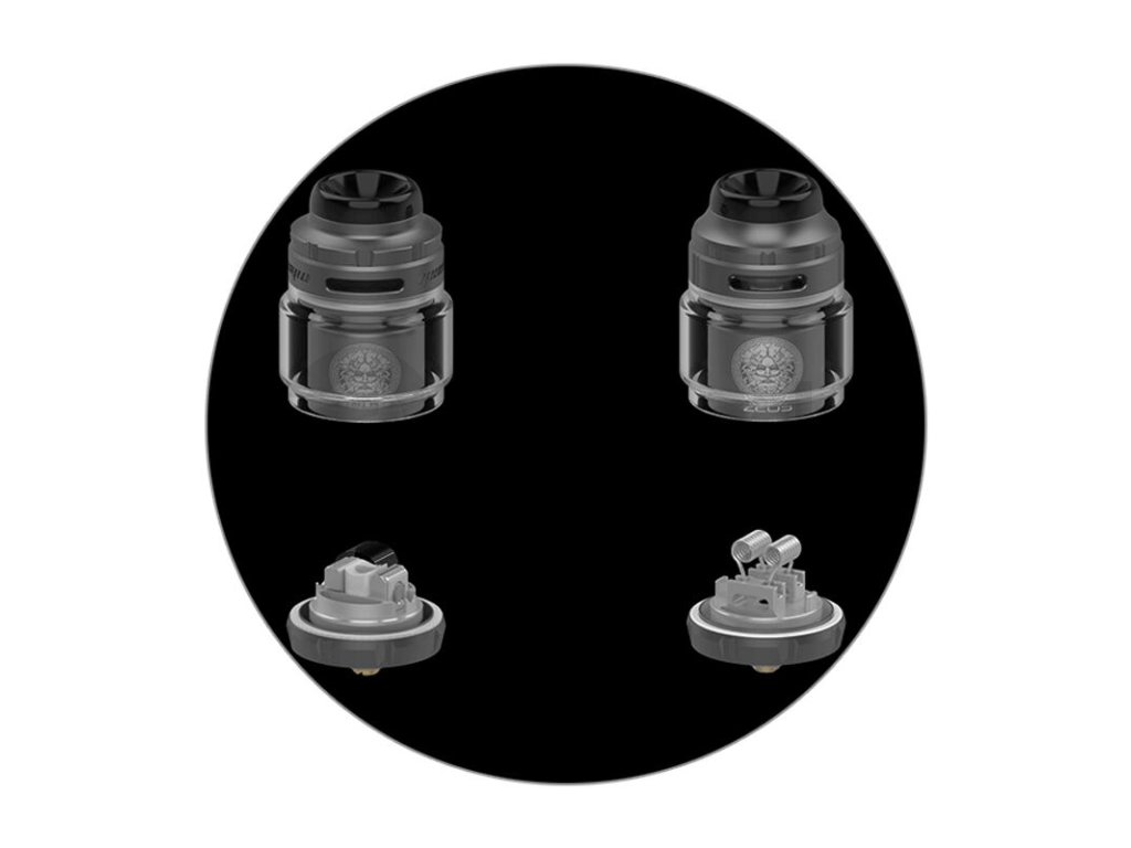 Novinkou je přítomnost vnitřní modulární základny pro instalaci mesh pletiva. Díky použití mesh základny došlo k navýšení odpařovací plochy a zjednodušení celkové obsluhy a instalace. S mesh základnou vynikne chuť jakéhokoliv e-liquidu, atomizér také oceníte při vapování složitějších tabákových směsí, nebo dezertových e-liquidů. Základna je modulární, můžete ji proto z atomizéru odšroubovat a nahradit ji za standardní základnu z původní verze atomizéru Zeus X RTA. Mesh základnu potom lze použít také v původním atomizéru, jsou navzájem kompatibilní. Pro zachování věrné chuti každého e-liquidu přichází Zeus X Mesh s oblíbeným systémem vrchního airflow. GeekVape Zeus X Mesh RTA je vynikající atomizér, který splní požadavky i těch nejnáročnějších vaperů a uživatelů v oblasti DL vapingu.
