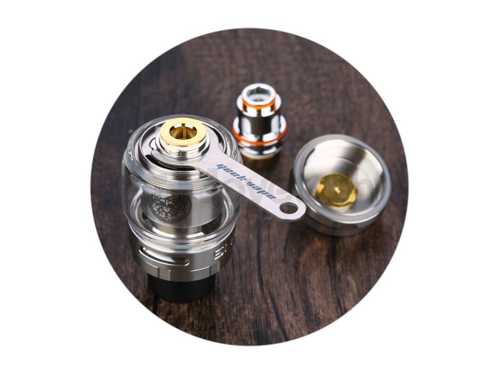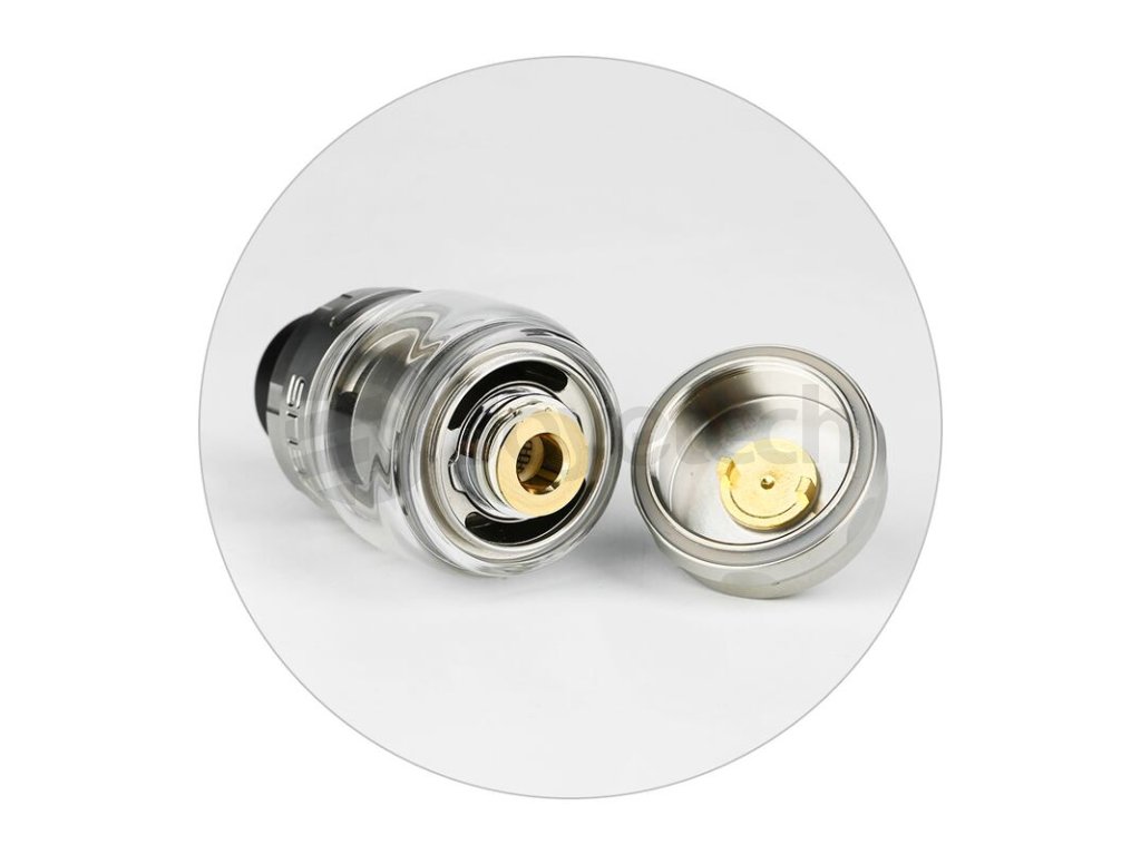 Clearomizér GeekVape Zeus Subohm Tank nabídne inovativní systém airflow. Ten se nachází ve vrchní části a eliminuje možné vyprskávání, nebo vytékání e-liquidu spodními airflow otvory. Díky pečlivě navržené vnitřní konstrukci si navíc vychutnáte dokonalé podání chuti, vzduch uvnitř atomizéru cirkuluje mnohem efektivněji a lépe odpařuje e-liquid směrem do náustku.