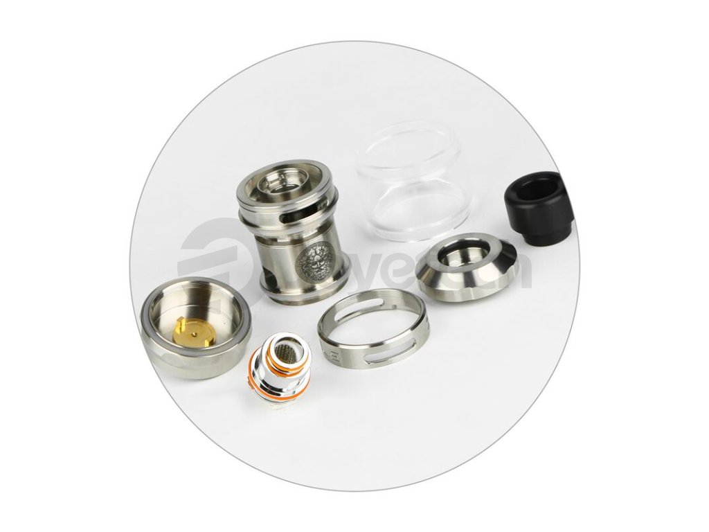O obrovskou produkci páry a využití na cloud chasing se potom postará nízkoprofilový náustek s uchycením typu 810, který najdete ve vrchní části atomizéru. Náustek si můžete také pohodlně vyměnit za svůj vlastní náustek se stejným typem uchycení. Uvnitř atomizéru se potom nachází komora pro samotné žhavící tělísko. K modelu Zeus Subohm Tank byly představeny dvě nové žhavící hlavy. První z nich nese název Zeus Z1 Mesh a disponuje odporem 0,4 ohm. V jeho jádru najdete mesh pletivo pro rychlý náběh žhavení a obrovskou produkci chutné páry. Druhé tělísko v balení se jmenuje Zeus Z2 Mesh a nabídne ještě větší produkci páry díky odporu 0,2 ohm. Pokud hledáte špičkový atomizér pro přímé potahování, GeekVape Zeus Subohm Tank vám zprostředkuje jedinečný zážitek.