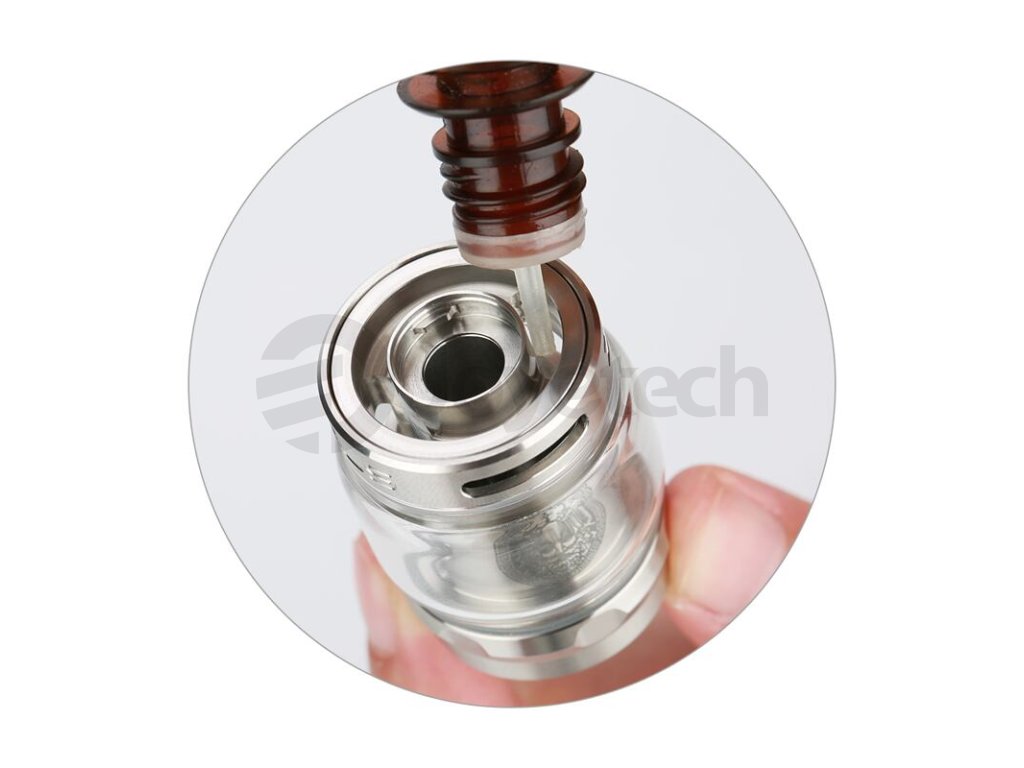 Došel vám e-liquid v tanku a potřebujete atomizér rychle doplnit? Žádný problém. V tomto případě vás potěší přítomnost jednoduchého systému vrchního plnění. Stačí tedy pootočit vrchním uzávěrem, který následně odejmete a můžete začít plnit. Celý proces plnění zabere jen několik málo vteřin. Následně se můžete opět věnovat pohodovému vapování a užívat si velkou tvorbu páry.