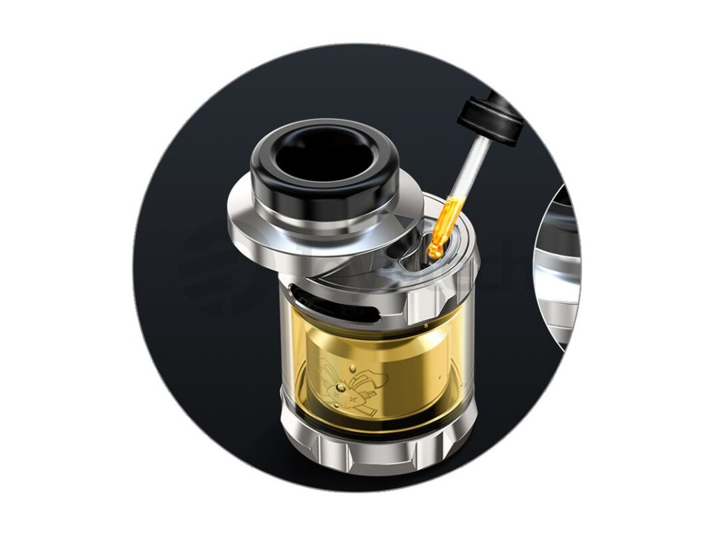 Pokud vám dojde v atomizéru e-liquid, jednoduše vysunete vrchní uzávěr do strany a můžete začít plnit. Už žádné špinavé ruce od e-liquidu, naplněno budete mít během pár vteřin, ruce zůstanou čisté a atomizér bude opět produkovat hustou a chutnou páru. Tento výsuvný systém plnění oceníte také při častém cestování, kdy není například čas šroubovat uzávěr, nebo ho odkládat a obávat se potom jeho ztráty.