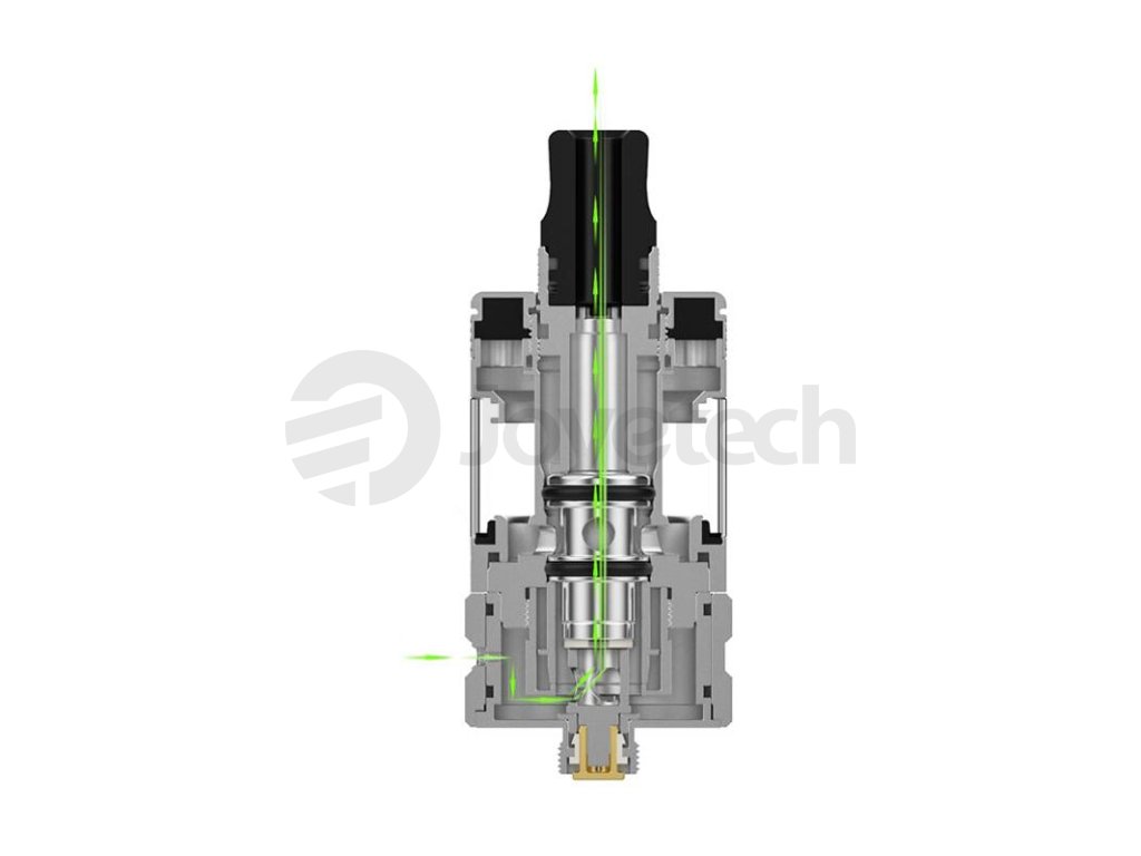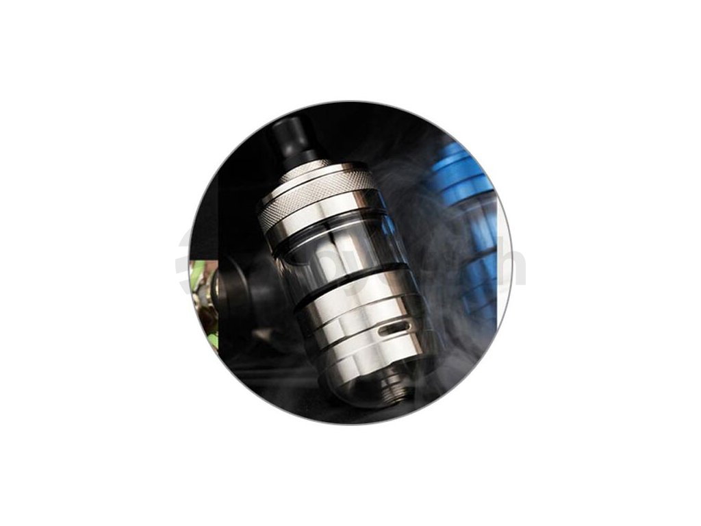 Ve spodní části se nachází airflow systém s možností plynulé regulace dle potřeby. Na spodním airflow kroužku se nachází čtyři menší otvory s průměry 0,8 mm, 1,0 mm, 1,2 mm a 1,5 mm pro utaženější MTL potah, ale také širší otvor s rozměry 1,7 x 6,2 mm pro RDL a vzdušnější MTL potahování. Možnosti jsou tak skutečně rozsáhlé.