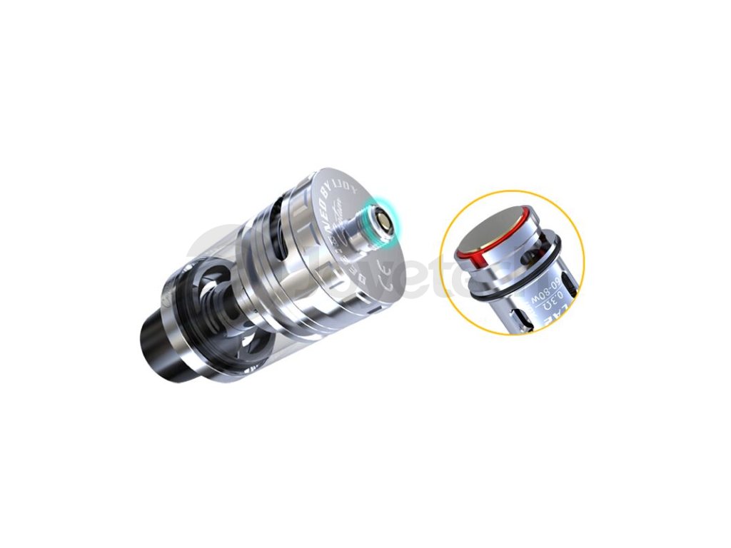 Ve spodní části se nachází pozlacený 510 kontakt pro co nejlepší vodivost a naprosto přesné a rychlé nažhavení. Ve vrchní části se nachází pohodlný výsuvný uzávěr pro doplnění e-liquidu. Pro doplnění postačí vysunout ho do strany a doplnit e-liquid podle potřeby. Tento stylový clearomizér se bude úžasně vyjímat ve vaší sbírce a na vašem modu. Krásný kousek pro přímé potahování.