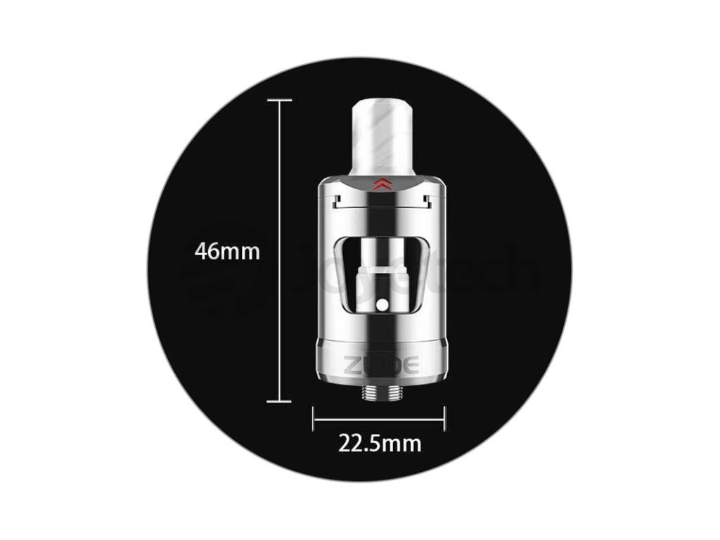 Innokin Zlide Tank v TPD verzi nabídne praktické a kompaktní rozměry. Délka atomizéru činí jen 45,9 mm a průměr se zastavil na krásných 22,7 mm u spodní základny. Ve spodní části atomizéru se nachází závit typu 510, díky čemuž je atomizér kompatibilní téměř se všemi mody na současném trhu.
