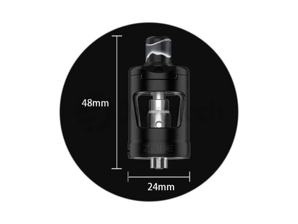 Innokin Zlide Tank je elegantně zpracovaný atomizér vhodný pro začínající vapery a nenáročné uživatele. Nabídne celokovovou konstrukci a provoz na tovární žhavící hlavy ze série Z-Coil. K dispozici je široká nabídka žhavících hlav se zaměřením hlavně na klasické šlukování, samostatně se však dají dokoupit také hlavy pro DL vapování. Délka atomizéru činí jen 48 mm a průměr se zastavil na 24 mm. Ve spodní části se nachází závit typu 510, díky čemuž je atomizér kompatibilní s drtivou většinou modů na dnešním trhu. O přísun vzduchu do atomizéru se postará spodní regulovatelný systém airflow.