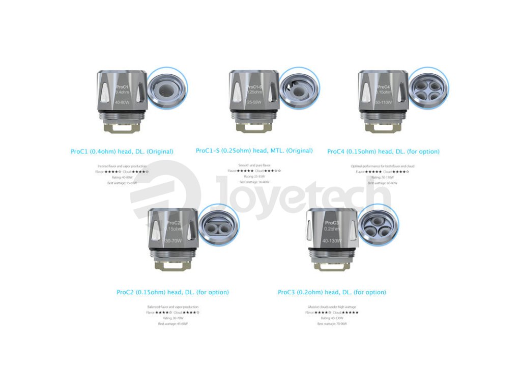 Zárukou multifunkčního využití je potom plná kompatibilita se žhavícími hlavami ze série Joyetech ProC. Mezi nimi si můžete vybírat jak žhavící hlavy pro přímé potahování, tak také pro šlukování. Výběr je široký a opravdu jen na vás. O pečlivou produkci páry se starají plně regulovatelné vzduchové otvory ve spodní části.